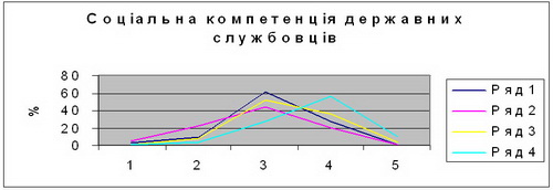 Очевидно, що рівень соціальної компетенції державних службовців обмежений як статусом, так і соціально-економічними труднощами, які неможливу здійснити навіть і при бажанні допомогти вирішити конкретну проблему для конкретної людини, установи чи організації. Разом з тим, соціальна компетенція це в значній, а може і в більшій мірі, проблема моралі, культури і етики державного службовця.