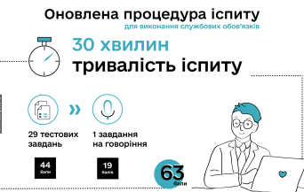 28 липня 2021 року в Центрі перші десять претендентів склали онлайн іспит на рівень володіння державною мовою. Він проходив в іспитовій системі - exam.mova.gov.ua, що створена Національною комісією зі стандартів державної мови. На підставі результатів іспиту видаватимуть державний сертифікат про рівень володіння державною мовою. далі » |