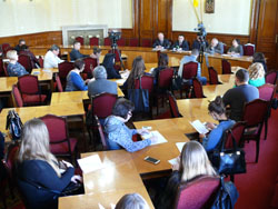 Круглий стіл на тему «Взаємодія органів влади з інститутами громадянського суспільства в процесі публічного управління», організований Чернівецьким регіональним центром перепідготовки та підвищення кваліфікації працівників органів державної влади, органів місцевого самоврядування, державних підприємств, установ та організацій, відбувся у середу, 21 березня, в обласній державній адміністрації. Державні службовці, науковці та представники громадських організацій спілкувалися про стан та перспективи взаємодії «влада – громада» у Чернівецькій області, основні механізми цієї взаємодії, а також розглядали стратегію розвитку громадянського суспільства. Співорганізаторами заходу виступили відділ комунікацій з громадськістю облдержадміністрації, Громадська рада при Чернівецькій обласній державній адміністрації та Науково-дослідницький інститут європейської інтеграції та регіональних досліджень Чернівецького національного університету ім..Ю.Федьковича. Під час дискусії мова йшла про завдання та функції громадських рад, які, за словами учасників, є важливим інструментом у налагодженні діалогу «влада-громада» та прийнятті ефективних управлінських рішень. Представники інститутів громадянського суспільства висловили свої пропозиції щодо покращення співпраці з органами влади. На їх погляд, є необхідність у більшій публічності та відкритості з боку державних структур. З іншого боку, як було зазначено, не завжди громадські організації є представниками громадськості – це одна з суттєвих проблем, окрім того, не всі вони є дієвими. Як показує практика, ефективного результату вдається досягти тоді, коли відбувається об’єднання зусиль і спільна робота інститутів громадянського суспільства у тому чи іншому напрямку. Громадським організаціям також важливо більш активно поширювати інформацію про результати своєї діяльності і доносити її до широкого загалу. Як зазначила начальник відділу комунікацій з громадськістю Леся Нос, на сьогодні обласна адміністрація активно співпрацює з громадськими організаціями, залучає їх до розгляду важливих питань, організації та проведення заходів. Ведеться робота із запровадження електронного консультування, що дасть можливість громадянам оперативно отримувати необхідну інформацію від компетентних структурних підрозділів. Про те, над чим працюватиме Громадська рада, розповів її голова Тарас Халавка. На сьогодні уже сформовано комісії, затверджено план роботи і члени ради розпочали активну роботу над вирішенням низки винесених на розгляд питань. За словами організаторів, всі пропозиції, які прозвучали під час круглого столу, будуть опрацьовані. Зокрема, буде розглянуто можливість проведення Форуму інститутів громадянського суспільства, на необхідності якого наголосили учасники.