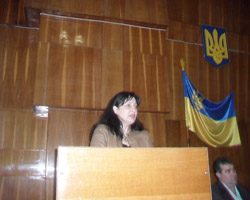 Головний спеціаліст юридичного відділу апарату облдержадміністрації Ольга Єремійчук - викладач Центру перепідготовки та підвищення кваліфікації працівників органів влади, відкрила семінар та розповіла про новації в законодавстві про державну службу.