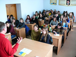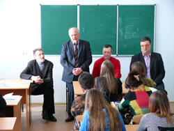 Круглий стіл на тему «Просвітницька робота в територіальних громадах», організований кафедрою педагогіки та соціальної роботи факультету педагогіки, психології та соціальної роботи Чернівецького національного університету ім..Ю.Федьковича, відбувся у середу 28 березня 2018 року. Співорганізаторами заходу виступили Чернівецький регіональний центр перепідготовки та підвищення кваліфікації працівників органів державної влади, органів місцевого самоврядування, державних підприємств, установ та організацій та Департамент соціального захисту населення облдержадміністрації. Під час дискусії мова йшла про стан та перспективи формування об’єднаних територіальних громад, про співпрацю місцевої влади та вищої школи. Науковці, представники громадських організацій та студенти спілкувалися про роль просвітницької роботи у територіальних громадах, про особливості патріотичного виховання та шляхи запобігання конфліктів у сучасному кризовому українському суспільстві. На круглому столі з доповіддю «Концептуальні засади реформування органів місцевого самоврядування» виступив директор Чернівецького центру перепідготовки та підвищення кваліфікації Ярмистий Микола Васильович. |