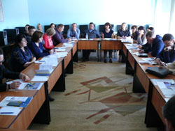 З промовою виступив директор Чернівецького центру перепідготовки та підвищення кваліфікації держслужбовців Микола Ярмистий, який розповів слухачам круглого столу, про механізм співпраці органів місцевого самоврядування із ЦППК з питань професійного навчання посадових осіб ОТГ. Микола Васильович визначив потреби у професійному навчанні посадових осіб ОТГ в системі публічного управління. Окремим пунктом у своєму виступі виділив інформаційне та комунікативне забезпечення професійного навчання, а саме інформаційне забезпечення: сайти, буклети, видання; комунікації: конференції, круглі столи, семінари; аналітика: соціологічні дослідження, аналіз статистичних даних, експертні оцінки тощо.