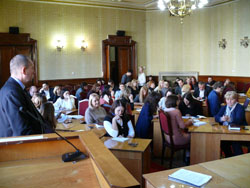 30 жовтня 2018 року розпочалося навчання державних службовців обласної державної адміністрації за програмою постійно діючого семінару «Актуальні питання органів державної влади в умовах децентралізації». Відкривали навчання Стецевич Олег Іванович – керівник апарату обласної державної адміністрації та Ярмистий Микола Васильович – директор Центру перепідготовки та підвищення кваліфікації. В ході навчання слухачі прослухають такі основні теми: «Правове забезпечення діяльності органів державної влади», «Ділова українська мова», «Європейська та євроатлантична інтеграція України», «Запобігання та врегулювання конфлікту інтересів в діяльності публічних службовців», «Діловодство в процесі службової діяльності», «Психологія та професійне спілкування в системі державної служби», «Децентралізація влади в системі публічного управління», «Форми і методи взаємодії органів влади з представниками інститутів громадянського суспільства», «Організація діяльності державного службовця», «Дисциплінарна та матеріальна відповідальність службовців відповідно до Закону України «Про державну службу», «Формування позитивного іміджу посадовців». Слухачі отримають змістовні і професійні відповіді на всі свої питання. По закінченню навчання учасники постійно діючого семінару отримали посвідчення про підвищення кваліфікації встановленого зразка, що свідчить про успішність пройденого курсу. |