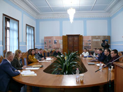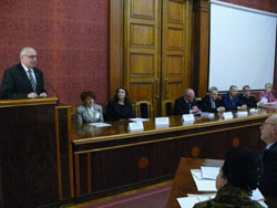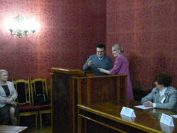 З доповідями виступили – доктор наук державного управління, професор завідувач кафедри публічного управління та публічної служби Національної академії державного управління при Президентові України Світлана Хаджирадєва, яка розповіла про умови та роль децентралізації та муніципальний розвиток на засадах стратегічного та проектного менеджменту; доктор політичних наук, професор кафедри політології та державного управління Східноєвропейського національного університету ім.. Лесі України Валентин Малиновський, який розповів про проблеми і перспективи децентралізаційної реформи в містах України; доктор, доцент факультету європейських студії Клузького університету «Бабеш-Больяї» Добра Дорін-Мірчя, презентував значення етичних стандартів на рівні публічних посадовців та розповів про досвід Румунії у цьому.