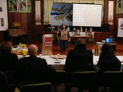 З ключовою презентацію на круглому столі про підвищення кваліфікації учасників проекту та їх спільну поїздку у Румунію виступила заступник директора – начальник навчально-методичного відділу Чернівецького центру перепідготовки та підвищення кваліфікації Альбіна Грищенко. Свою думку стосовно даного проекту та успіхів, які були досягнуті під час нього висловили викладачі Центру – Альона Головіна, Наталія Нечаєва-Юрійчук та Наталія Ротар.