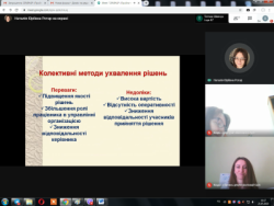 Протягом семінару слухачі отримали вичерпну і цікаву інформацію про теоретико-методологічні основи застосування методів прийняття рішень, ознайомилися з процесом підготовки, прийняттям та виконанням управлінських рішень (фази, цикли), також розглянули комунікативні процеси в процедурі ухвалення управлінських рішень.