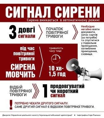 Якщо ви почули безпосередньо сигнал сирени чи отримали сповіщення про повітряну тривогу з офіційних каналів – рушайте в укриття. Залишайтесь в укритті до наступного сигналу сирени (1 довгий або короткий сигнал).