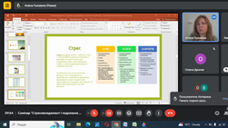 дистанційною формою навчання в режимі онлайн, за допомогою платформи Google Meet на тему «Стресменеджмент і подолання професійного вигорання службовців» для державних службовців структурних підрозділів облдержадміністрації, райдержадміністрацій та посадових осіб органів місцевого самоврядування.