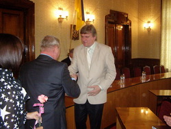 До привітань приєдналися Круглашов Анатолій Миколайович – завідувач кафедри політології та державного управління Чернівецького національного університету ім. Юрія Федьковича, доктор політичних наук, професор; Лєньков Михайло Іванович – заступник начальника Управління державної служби Головного управління державної служби України у Чернівецькій області; Пазяк Іван Васильович - начальник організаційно-контрольного відділу апарату облдержадміністрації; Бриндуша Дескелеску – голова Сучавської філії Асоціації реалізаторів, видавців патронату книги Румунії. |