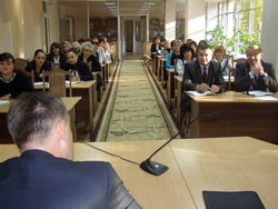 27 вересня 2011 року проведено короткотерміновий семінар на тему: «Запобігання та протидія проявам корупції у сфері управління» для заступників начальників управлінь та головних спеціалістів з кадрів управлінь Пенсійного фонду України в районах Чернівецької області. Семінар відкрив ЯРМИСТИЙ Микола Васильович – директор Центру. |