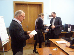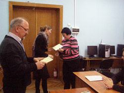 30 січня 2015 року завершилось навчання за програмою постійно діючого семінару «Англійська мова. Розмовний курс». Семінар прослухали 16 держслужбовців структурних підрозділів облдержадміністрації. За період навчання слухачі підвищили свій рівень знань з англійської мови. Вони прослухали такі основні теми: «Загальна характеристика мови. Розповсюдження англійської мови у світі. Алфавіт. Знаки міжнародної фонетичної транскрипції. Типи складів. Правила читання. Наголос. Правильна вимова» та теми на вивчення граматики. Мета семінару: читання і переклад зі словником, основний словниковий запас побутового та офіційного спілкування, основний словниковий запас офіційно-ділової мови. Методика навчання також передбачала проведення практичних занять, на яких слухачі закріплювали свої знання за допомогою лексичних і граматичних вправ, діалогів та текстів. Семінар проводила вчитель англійської мови Дзюбко Анжеліка Олексіївна. На підведенні підсумків навчання слухачі отримали посвідчення, які вручив директор Центру Ярмистий Микола Васильович. За результатами рейтингу за сумлінне ставлення до навчання відзначено: 1. Дунаєвського Валентина Борисовича – начальника відділу Департаменту економічного розвитку облдержадміністрації; 2. Онуфрейчука Євгенія Борисовича – головного спеціаліста Департаменту екології та туризму облдержадміністрації; 3. Постолатій Оксану Валентинівну – начальника відділу Департаменту економічного розвитку облдержадміністрації.